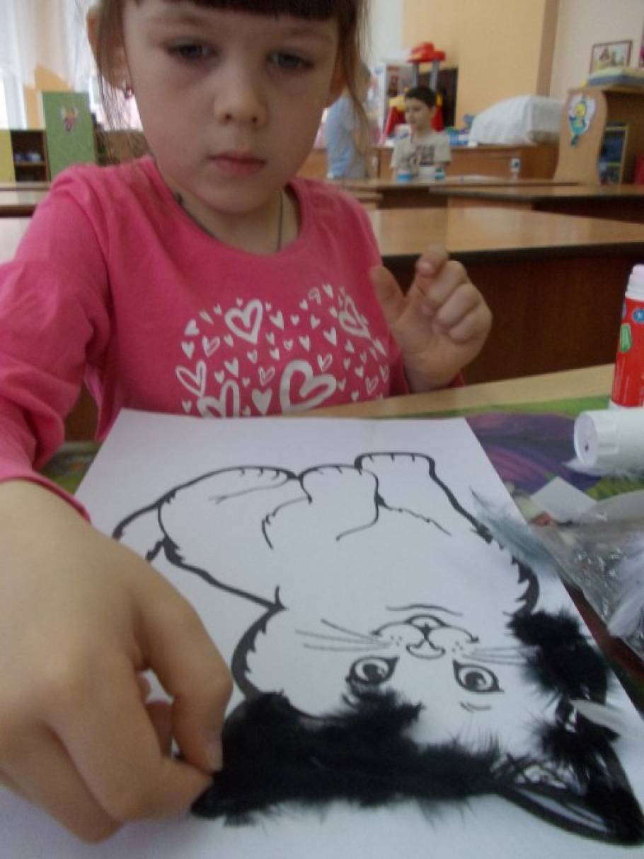 Представляю Вашему вниманию мастер-класс "Котенок" аппликация из перьев.