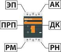 - независимый расцепитель – для дистанционного принудительного размыкания цепи, путем подачи управляющего сигнала на выводы расцепителя