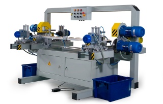 Предназначен для одновременной автоматической обрезки заготовки по длине с двух сторон и присадки по кромке заготовки с двух сторон под шканты и стяжные шурупы. Заготовка устанавливается на станок вручную и фиксируется на станине пневмозажимами. Затем происходит одновременная присадка двумя шпиндельными головками отверстий под стягивающий шуруп, далее происходит торцовка с двух сторон заготовки под размер и присадка отверстий под шканты с другой стороны кромки двумя шпиндельными головками одновременно.