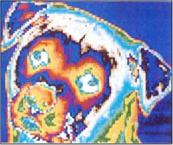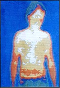 Человек излучает тепло. Его тепловое изображение в инфракрасных лучах показывает распределение температуры по поверхности тела. Более нагретые предметы выглядят светлее, более холодные – темнее, т.к. излучают меньше тепла.