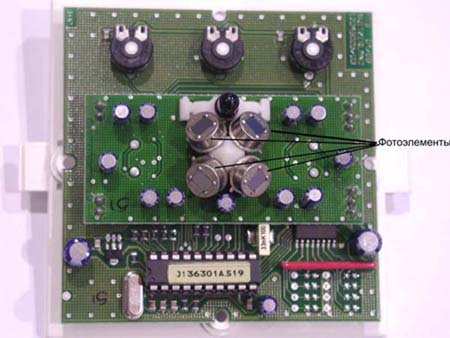В середине датчика расположены приемники ИК света – фотоэлементы.