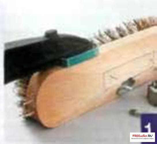 Приспособление готово. Его располагают большей заготовкой на полу вблизи двери – на месте, которое отводят для чистки обуви. Чистят, например, ботинки по одному. Становятся одной ногой на нижние щетки и передвигают ботинок несколько раз вперед-назад. Затем делают то же самоес другим. На щетки можно нанести гуталин, но это уже дело каждого, кто будет пользоваться таким устройством.