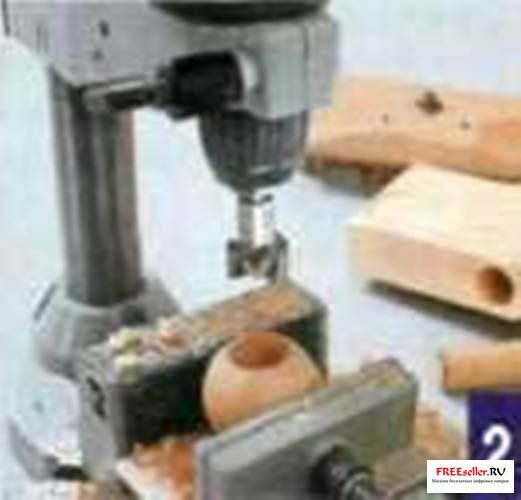 2. Просверлите сверлом отверстие глубиной 2 см в деревянном шаре. Диаметр отверстия должен быть чуть меньше или равен диаметру древка, скажем, 26 мм.