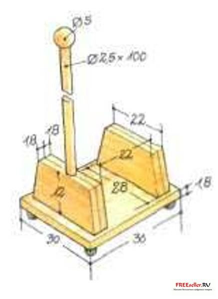 Для того чтобы при чистке обуви данную конструкцию можно было придерживать, в ней предусмотрено древко. Оно крепится к боковой заготовке. С этой целью в торце верхней части одной из боковых заготовок необходимо просверлить отверстие, заранее предусмотрев, чтобы диаметр древка и размер отверстия соответствовали друт другу. Древко должно входить в отверстие «с натягом».