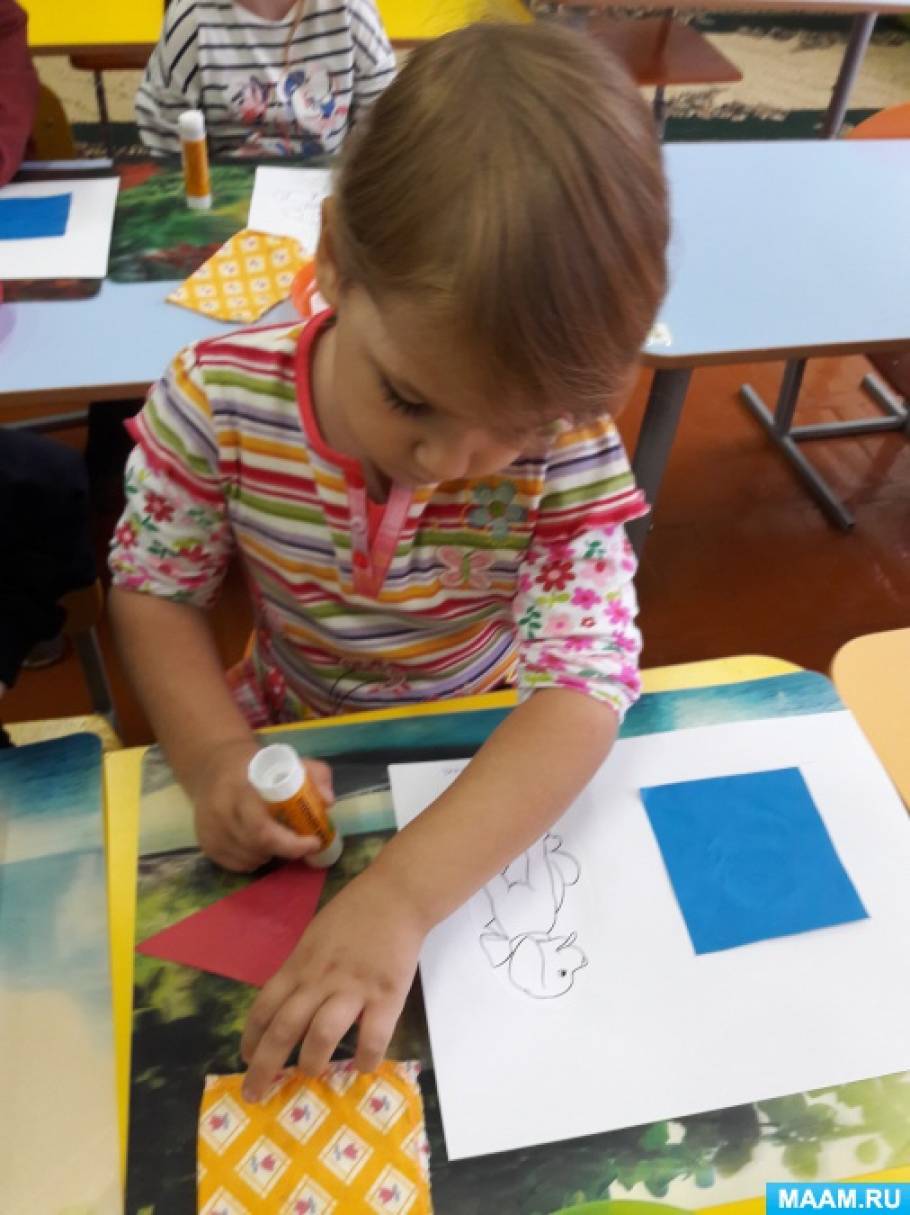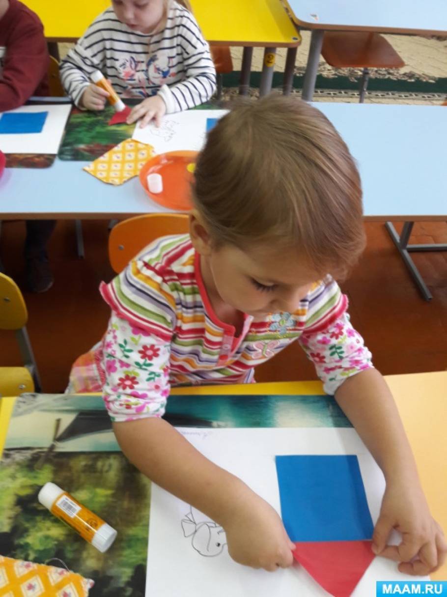 3. Формировать умение выкладывать изображение на бумаге и наклеивать его части в определённой последовательности.