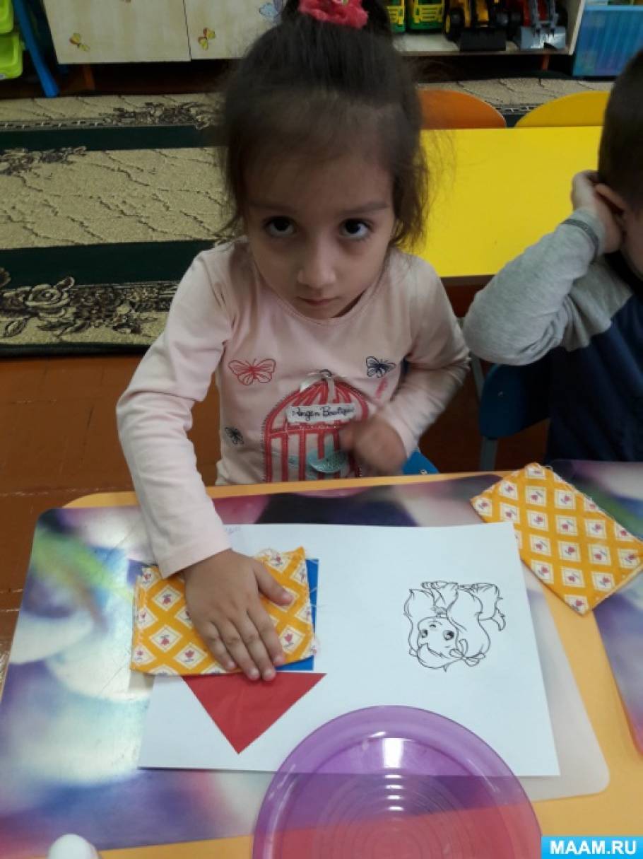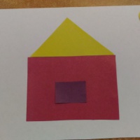 Воспитатель: Правильно, давайте рассмотрим домик для щенка, возьмем на листе выложим. Какой он формы? Какой формы окошечко?
