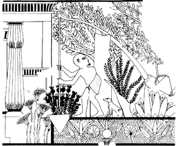 Поливка садовых деревьев с помощью шадуфа (гробница Ипуи)