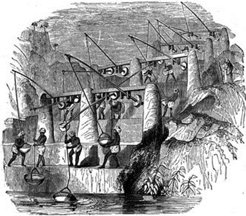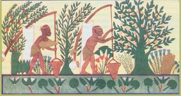 При необходимости поднять воду на большую высоту использовалась система шадуфов, в которой вода подавалась наверх в несколько приемов – со ступени на ступень.