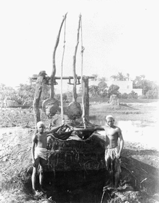 Вдоль всего Нила, если в этом есть потребность, могут быть вырыты колодцы, их можно вырыть и в пустыне, там, где водоносный горизонт лежит близко к поверхности. Для подъема воды, если она находится не очень глубоко, можно применять шадуф, но уже давно изобретено усовершенствованное приспособление, так называемое персидское колесо, или сакья.