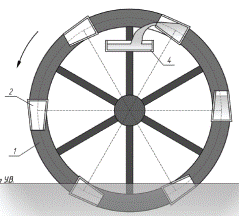 1 – привод, 2 – колесо, 3 – лопасти, 4 – приемное устройство