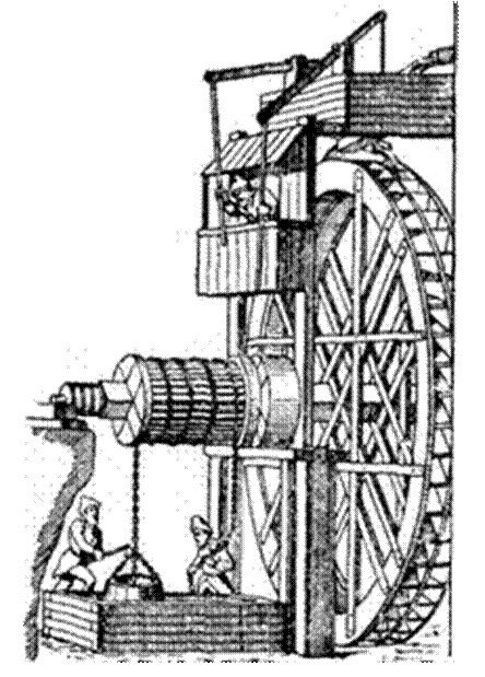 В древних цивилизациях: египетской, шумерской, китайской, бенгальской (то есть в 4 000 – 3 000 лет до н. э.) для подъема воды и подачи ее на поля уже использовались водоподъемные колеса (рис.).