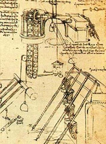 Множество вариантов устройств для подъема воды придумал и изобразил в своих записках Леонардо да Винчи: архимедовы винты, водяные колеса.