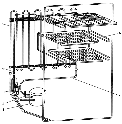 | 1 — мотор-компрессор; | 5 — конденсатор; |