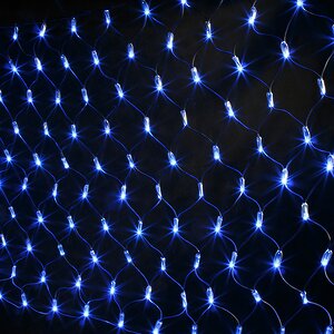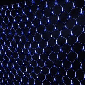 Размер: 1,7 х 1 м, черный провод ПВХ. Количество ламп: 160 синих LED ламп. Для использования в помещении. Контроллер, обеспечивающий 8 режимов работы.