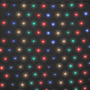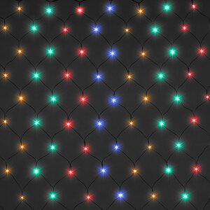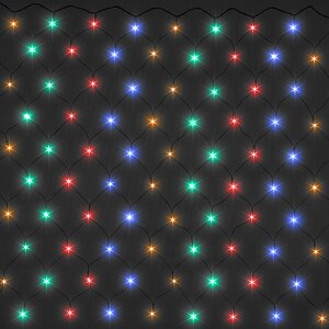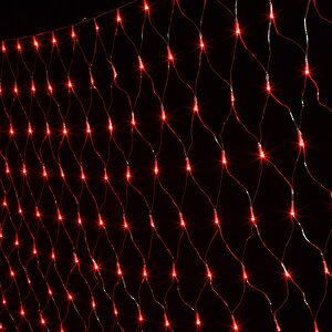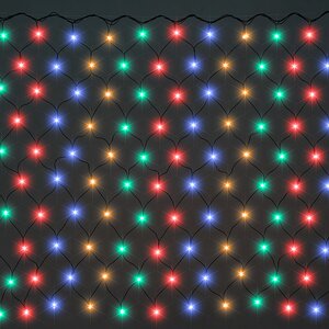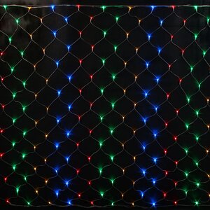 Размер: 1.5 м х 1 м, прозрачный провод ПВХ. Количество ламп: 144 разноцветных LED ламп. Для использования в помещении и на улице. Контроллер, обеспечивающий 8 режимов работы.