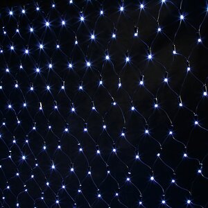 Размер: 1.7 м х 1 м, черный провод ПВХ. Количество ламп: 160 холодных белых LED ламп. Для использования в помещении. Контроллер, обеспечивающий 8 режимов работы, в т.ч. режим постоянного свечения.