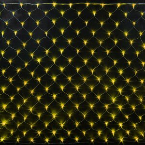 Размер: 2*1.5 м. Провод: прозрачный ПВХ. Количество ламп: 192 желтых LED ламп, есть контроллер, обеспечивающий 8 различных режимов свечения. Напряжение: 220V. Степень влагозащиты: IP54, подходит для использования в помещении и на улице. Соединяемая гирлянда (с коннектором): подключение до 5 шт. в одну линию.