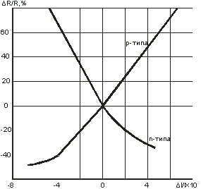 Рисунок 2.3 – Деформационные характеристики тензорезисторов из кремния с электропроводностью р- и n-типов