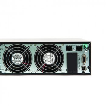220В, 3000ВА (2700 Вт) On-Line, синусоидальная форма выходного напряжения, световая и звуковая индикация режимов работы, необходимое кол-во АКБ для работы – 6 шт. (72В), минимальная требуемая ёмкость 17 Ач. Ток заряда АКБ – 6 А. Дистанционный мониторинг по RS 232, USB, порт для платы релейного интерфейса. Возможность подключения SNMP-модуля DL 801. Функция удаленного аварийного отключения выходного напряжения (EPO). Корпус под 19” шкаф, высота 2U или настольная установка.