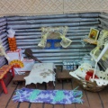 «Русская избушка». Из бумажных трубочек и картона Русскую избушку я делала из обычной бумаги скручивала бумагу на ручку и получались трубочки, они должны быть разного размера. Приклеивала.