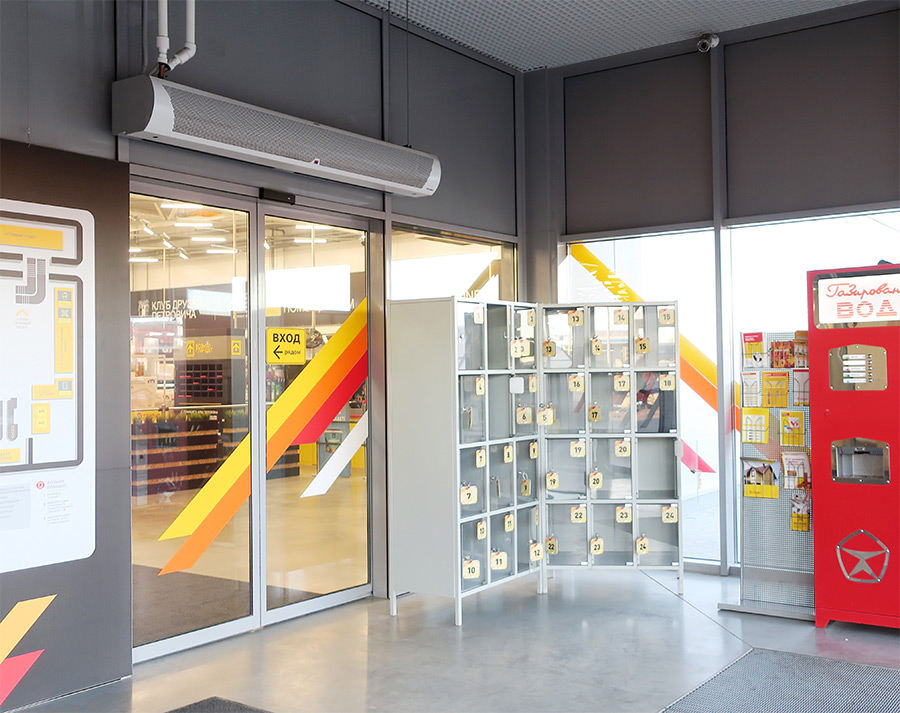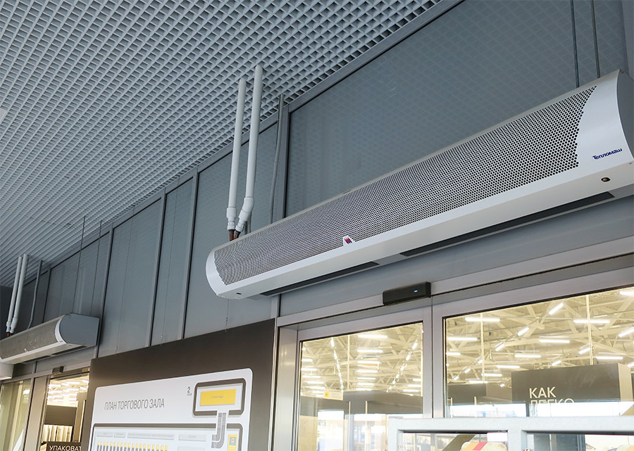Воздушные тепловые завесы устанавливаются на двери и дверные проемы зданий с большим количеством посетителей: в торговых и развлекательных центрах, вестибюлях метро, кафе и ресторанах, крупных офисах, банках, поликлиниках и т.п.