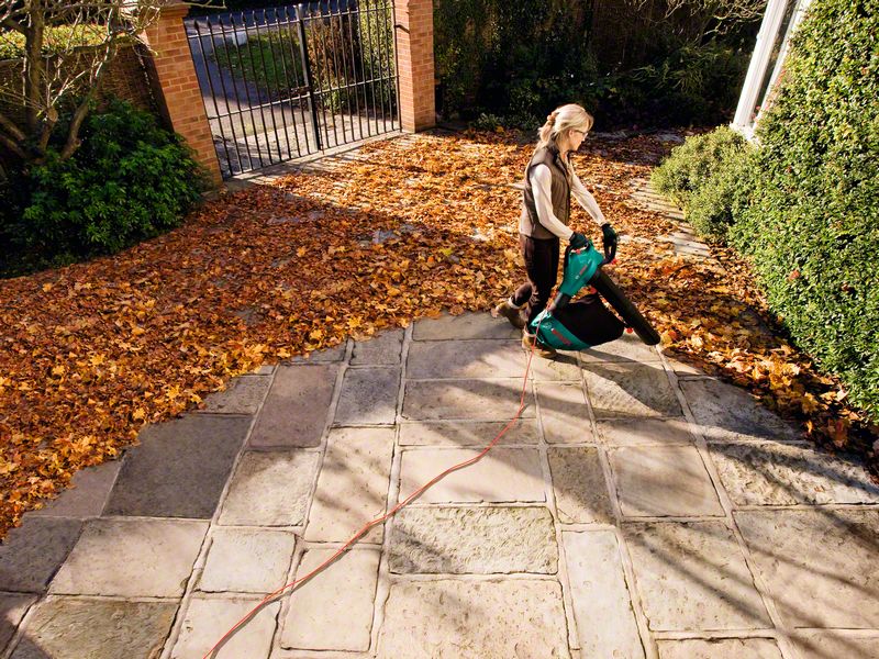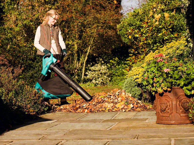 - Очень легкий. 3,2 кг (функция воздуходувки) и 4,4 кг (функция пылесоса) позволяют без труда собирать листву в саду