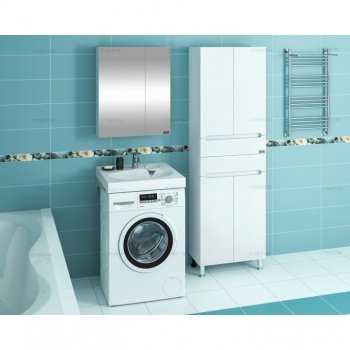 Если стиральная машина узкая и по размерам не превышает 40 см, подходящим решением станет умывальник 60х50. А для широкой техники с шириной 50 см отлично подойдут модели 60х60.