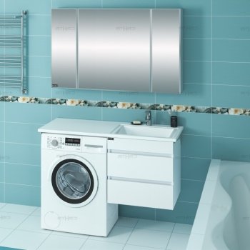 Нужно сделать такой выбор, чтобы раковина и стиральная машина подходили друг другу. Важно, чтобы бытовая техника была невысокой. Оптимальной высотой стиральной машинки считается 60-80 см.