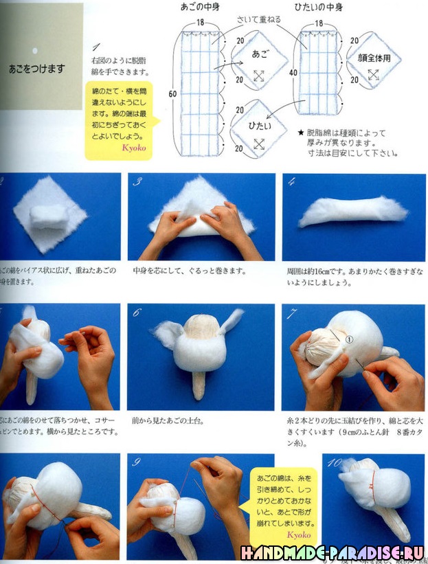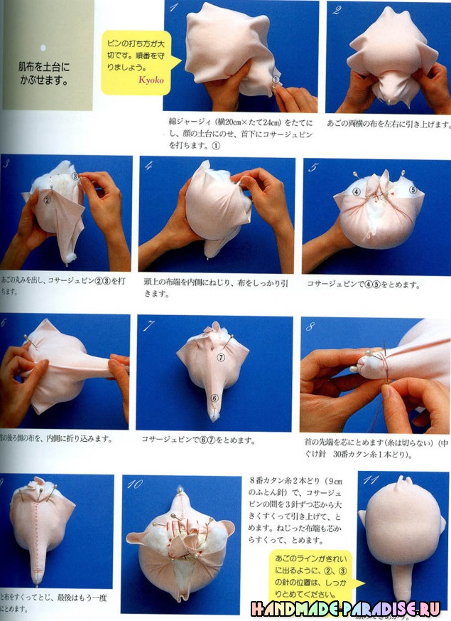 Выкройка текстильной куклы с ушками