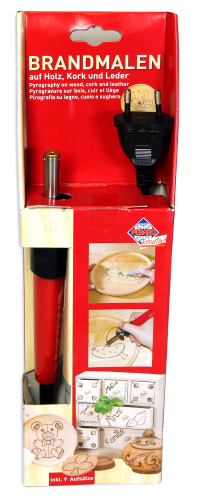 Выжигатель по дереву с насадками немецкой фирмы Pebaro поможет вашему ребенку научиться интересному и увлекательному творчеству. Комплект включает в себя 20 фигурных насадок для выжигания самых разнообразных узоров и картинок. Выжигательный аппарат оснащен качественной иглой-накаливания, позволяющей делать четкие и тонкие линии. Набор Pebaro поспособствует развитию у ребенка усидчивости и аккуратности, а также станет прекрасным подарком как для мальчиков, так и для девочек.