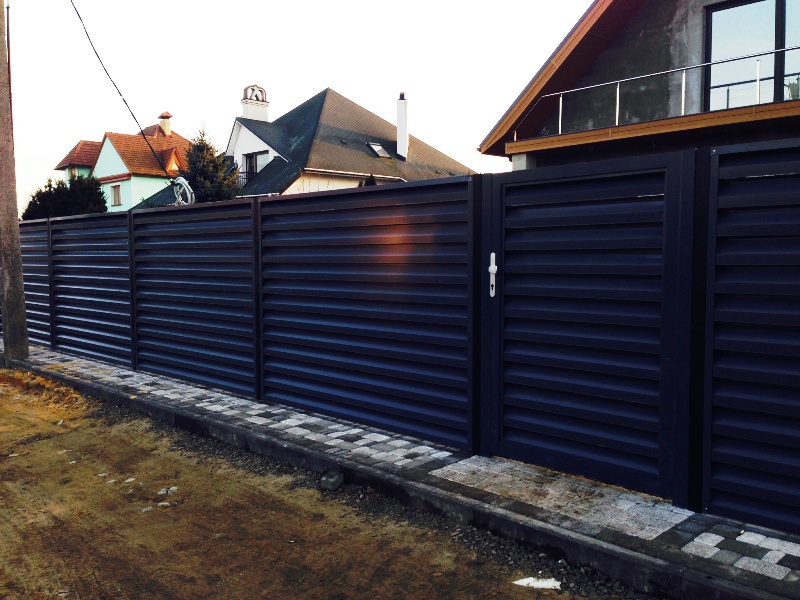 Металл и профнастил – еще один вариант для того, чтобы построить забор вокруг частного сектора. Вся разница между этими двумя видами – внешний вид. Ограждение из металлического штакетника внешне похоже на обычный деревянный забор, а вот профнастил представляет собой сплошной забор, который не позволит посторонним лицам «закинуть глаз» на территорию частного сектора, а значит можно чувствовать себя в безопасности.