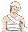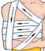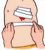 Герметизирующую повязку накладывают для того, чтобы предотвратить дальнейшее попадание воздуха в плевральную полость. Перед наложением повязки края раны смазывают любым жиром (вазелин, крем, растительный жир и т.п.), желательно стерильным. Затем на рану и на кожу вокруг нее накладывают непроницаемый для воздуха материал (резина, полиэтиленовая пленка, клеенка и т.п.), а поверх — обычную тугую бинтовую повязку, витки которой идут вокруг грудной клетки. Для этого бинт размером около 1 м кладут на левое плечо, чтобы один конец висел на спине, другой — на груди. Спиральными круговыми ходами, накладывающимися друг на друга, бинтуют грудную клетку снизу вверх до подмышечных впадин и здесь завязывают или фиксируют английской булавкой. Свободно висящую часть бинта перекидывают через правое плечо и связывают с концом, висящим на спине. Для повязки можно использовать полотенце, простыню, которыми обматывают грудную клетку пострадавшего и туго завязывают на здоровой стороне. При отсутствии жира и воздухонепроницаемой ткани непосредственно на рану грудной клетки наклеивают большое количество полосок липкого пластыря, так чтобы края их накладывались друг на друга (в виде черепицы).