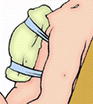 На повязку в области раны накладывают холод. Охлаждение области ранения уменьшает кровотечение, боль и отек. Можно приложить пузырь со льдом, лед, завернутый в полиэтиленовый пакет, наполненную холодной водой грелку или смоченную холодной водой ткань. По мере согревания лед меняют. Как правило, холод достаточно держать в месте ушиба 2 часа, поступая следующим образом: 15-20 минут холод держат на месте повреждения, затем на 5 минут его снимают, а новую порцию льда накладывают вновь на 15-20 минут и т.д.